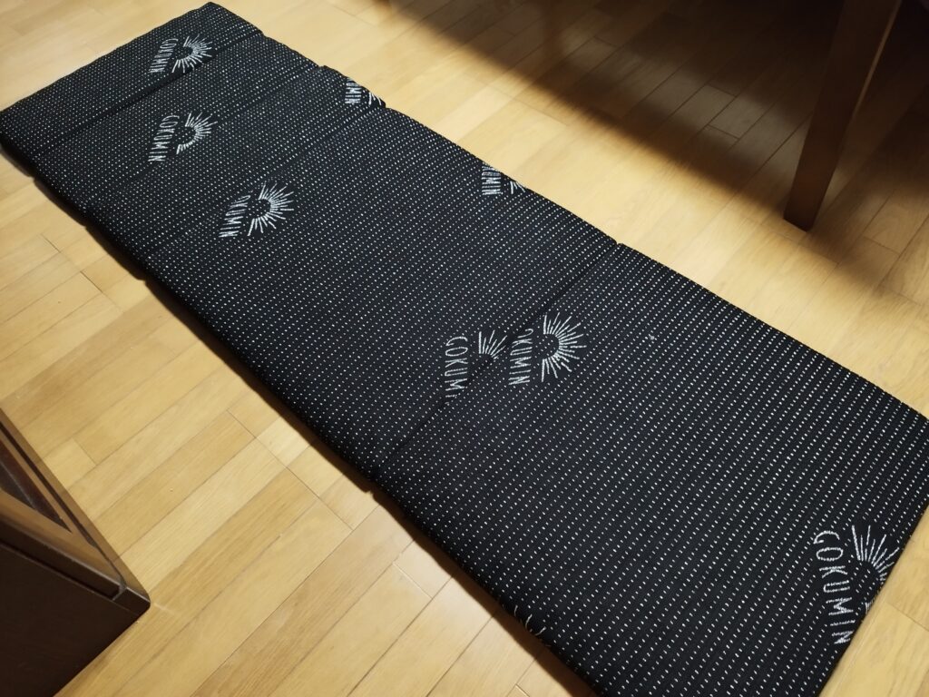 あと「椅子」になるかというと、それもちょっと微妙でした。もちろんクッションとしては十分です。ただテーブル高さを考えると16cmくらいの椅子が欲しいところなんですが、マットレスの厚みが5cmなので三重でも人が座れば半分くらいになってしまいます。