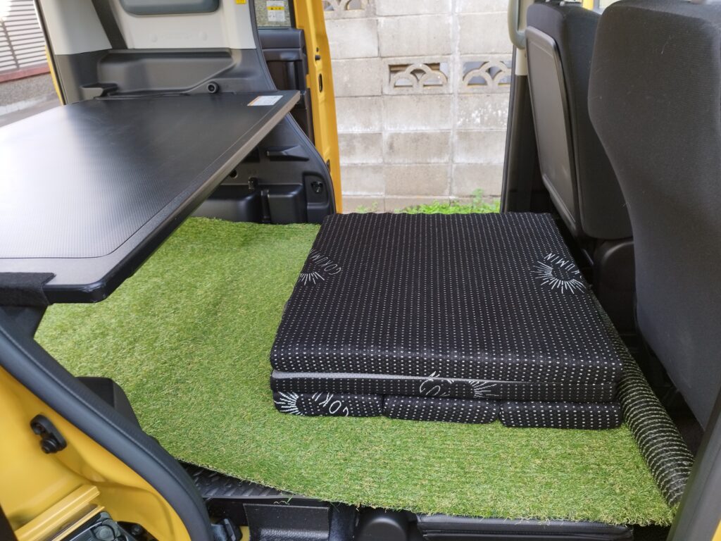 ただ自分は荷室を斜めに使って寝ているので、そうすると足先部分があまり幅ないので、このくらいでちょうどいいのかもしれません。