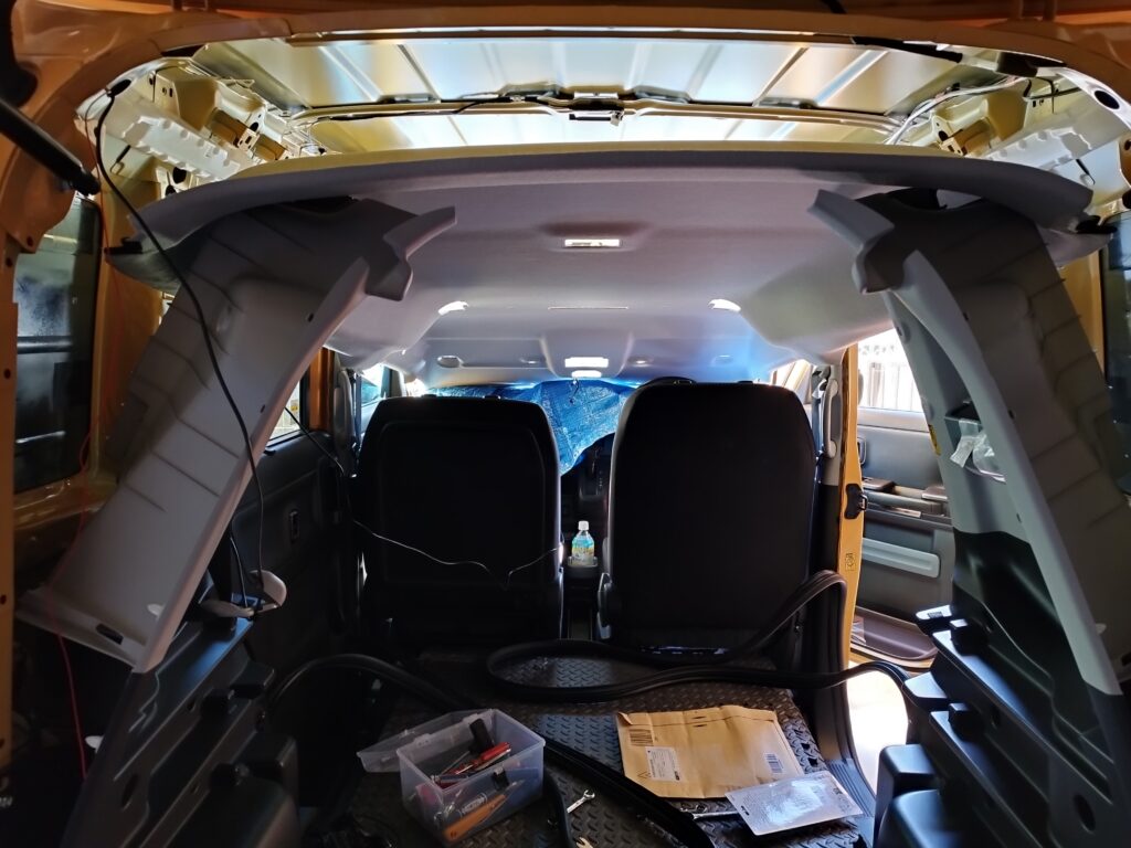 内張りを剥がす前に、天井に取り付けられているものをすべて外す必要があります。前方のサンバイザー、ルームミラー、前方ルームライトから始まり、運転席と助手席のすぐ後ろにつけられた収納スペース、後部座席のルームライト・・・などです。