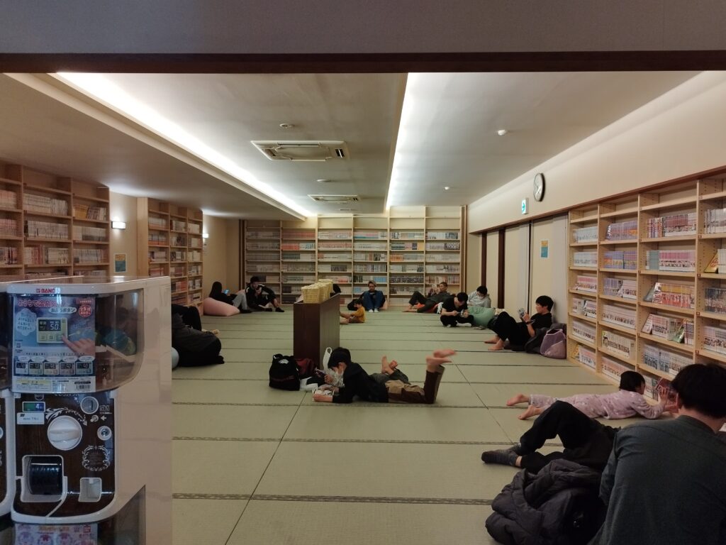 コミック書架のある休憩室も。