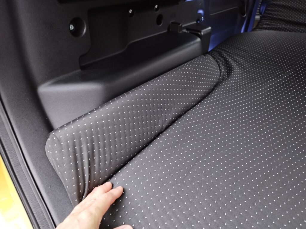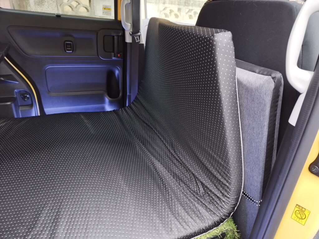 デメリットとしては、マットレスが荷室幅なので、敷く際には、荷室の床に置いてあるものをすべてマルチボードの上に乗せるか、折り畳んだ助手席に移動させないといけないことです。