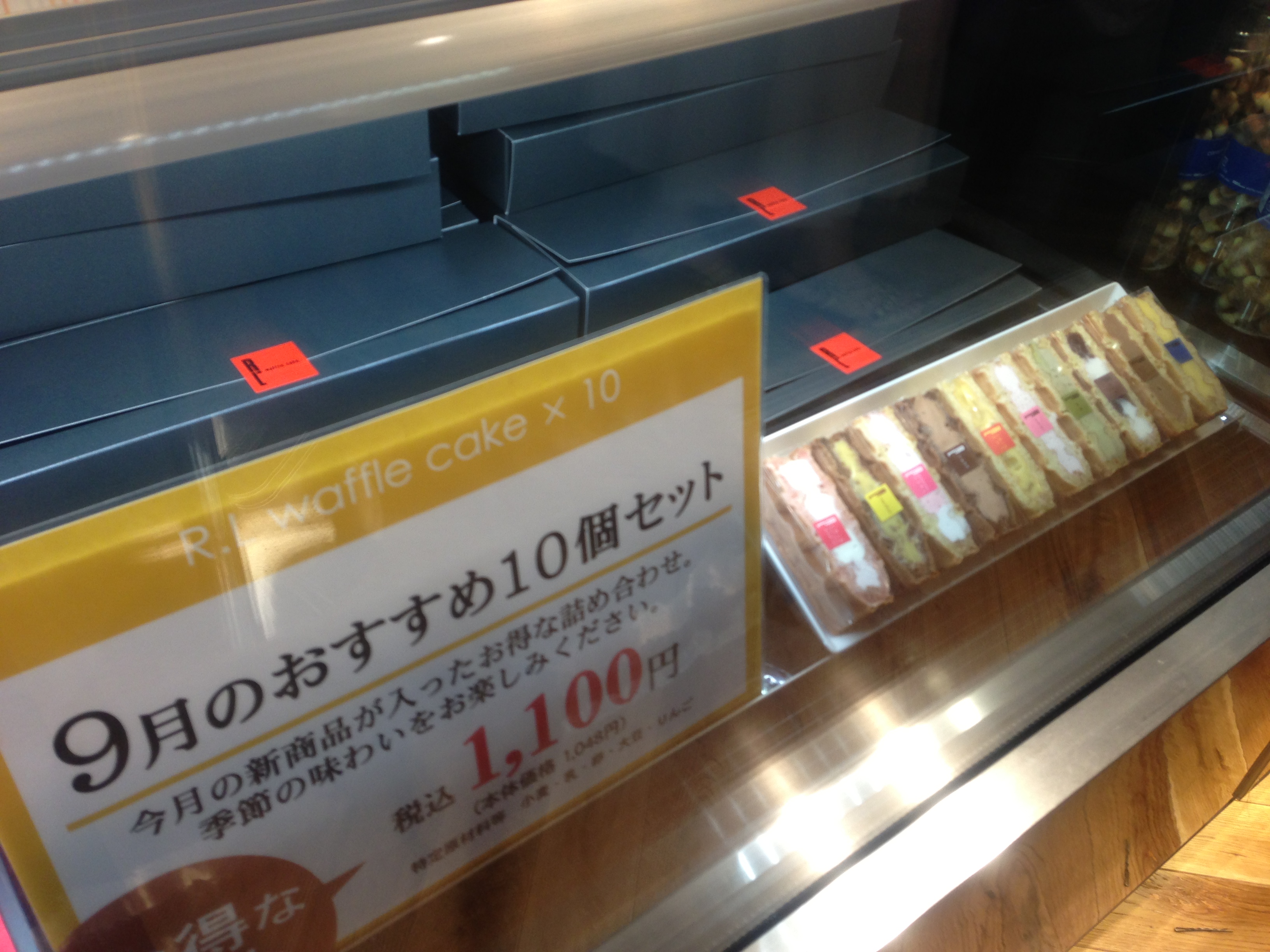 その一番丸の内改札近くにある「ワッフル・ケーキの店 R.L(エール・エル)」には、一個単位で購入できる柔らかい記事のワッフルケーキがあります。
